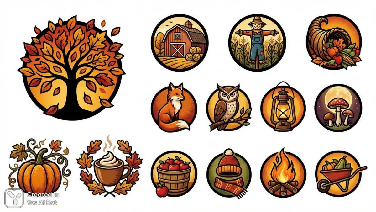 nanobanana Осенняя коллекция логотипов: красота природы и урожая в векторном стиле. Нейросеть Nano Banana