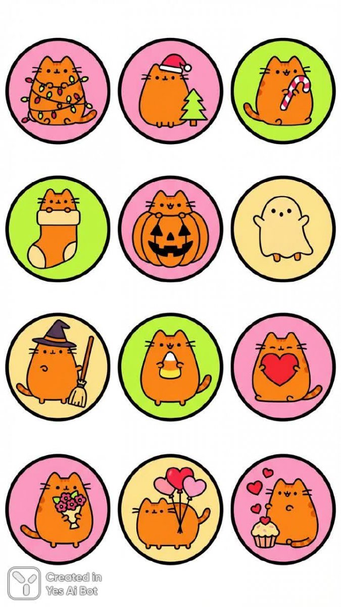 nanobanana Пусшин Кот: 12 Милых Стикер-Иллюстраций для Праздничного Настроения. Картинка из нейронной сети Нано Банана