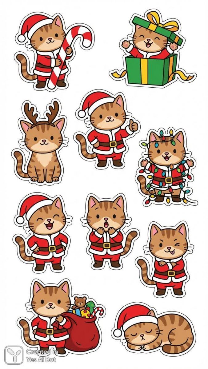 Забавные новогодние котики в стикерах: коллекция для творчества - Картинка, созданная ИИ NanoBanana