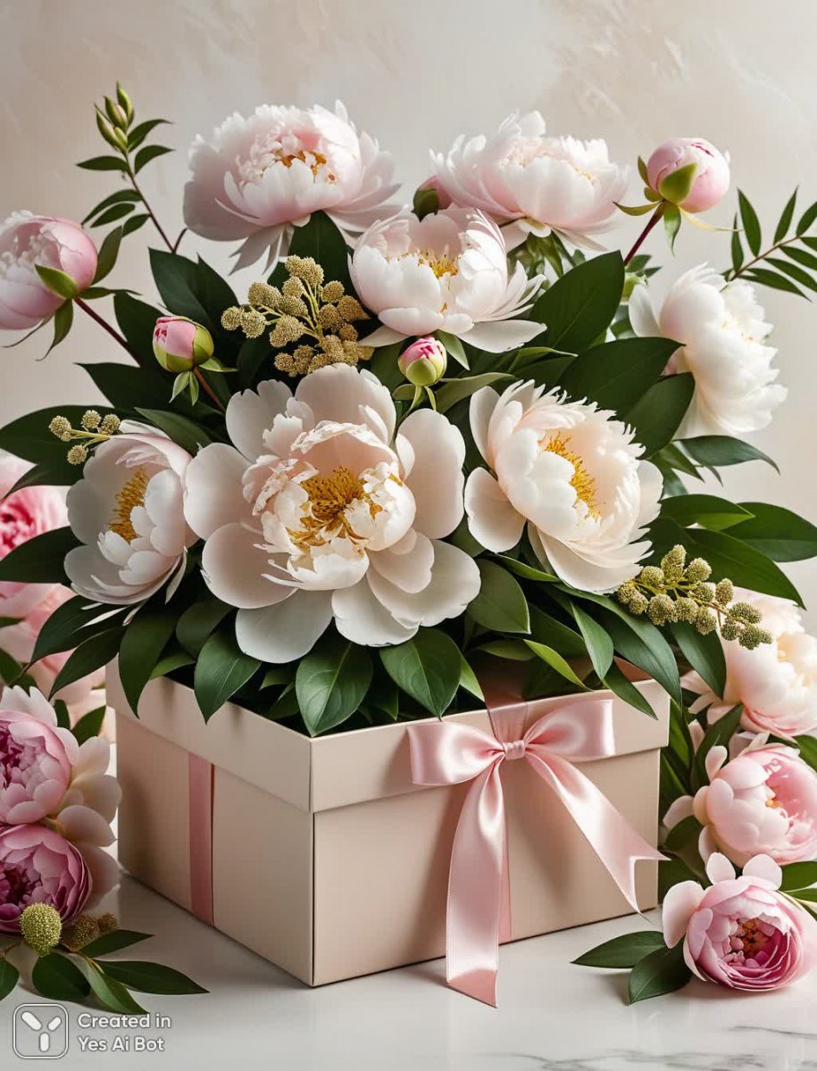 stable diffusion Нежная элегантность цветов в стильной подарочной коробке. Генерация из нейросети Stable Diffusion