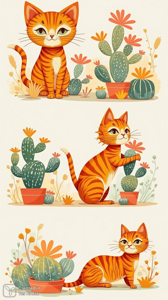 Очаровательная серия из трех иллюстраций в технике paper cut с элементами zentangle представляет собой забавную историю о коте и кактусе. Первая работа демонстрирует любопытного рыжего кота, выглядывающего через край горшка с растением, словно подсматривающего за его жизнью. Во втором рисунке кот игриво играет с лепестками кактуса, создавая комичную сцену нежной борьбы и беззаботного веселья. Третья иллюстрация фокусируется на детальном изображении обоих персонажей – кота и кактуса – с использованием замысловатых узоров zentangle, подчеркивающих их уникальную текстуру и форму. Мягкая цветовая палитра фона создает атмосферу тепла и уюта, акцентируя внимание на причудливом дуэте питомца и растения. Эта коллекция рисунков – настоящее произведение искусства, сочетающее в себе юмор, оригинальность и мастерство исполнения, способное вызвать улыбку и подарить хорошее настроение каждому зрителю. Это прекрасный пример того, как простые формы могут быть превращены в сложные и привлекательные изображения благодаря творческому подходу и вниманию к деталям. Каждая иллюстрация – это отдельная история, но вместе они создают цельную и гармоничную композицию, наполненную позитивной энергией и очарованием