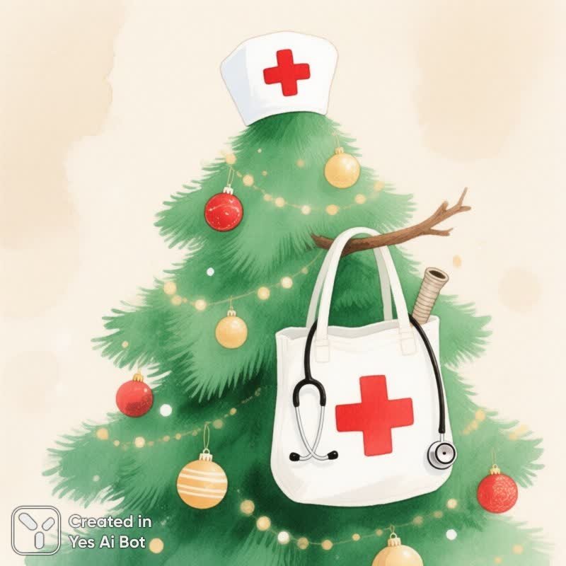 Медицинская новогодняя елка в акварельном стиле - Картинка, полученная с помощью нейросети Qwen