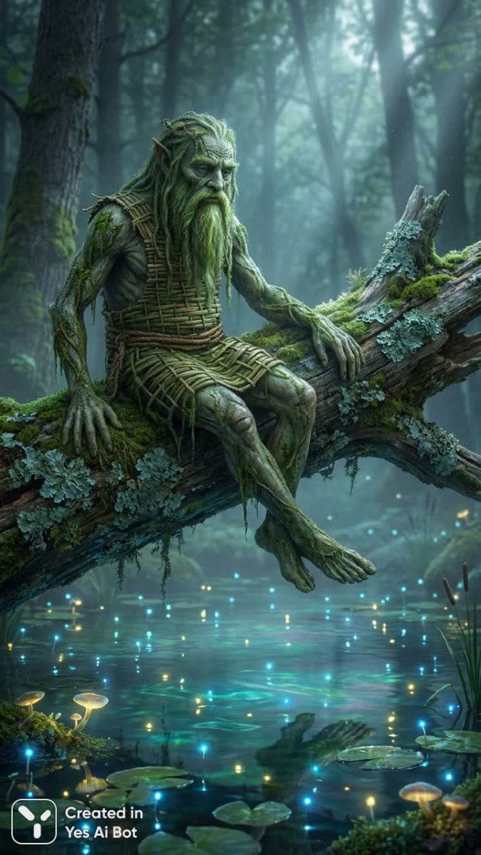 Водяной, древний дух вод, восседает на поваленном мху стволе дерева, излучая спокойствие и загадочность. Его кожа покрыта водорослями, что свидетельствует о его тесной связи с водным миром. Он сидит изящно, словно владыка своего царства, рядом с пленительным волшебным прудом. Поверхность воды искрится неземными огнями, отражающими мерцание таинственного света, создавая завораживающую атмосферу. Кажется, что время застыло в этом месте, где древняя магия переплетается с красотой природы. Водяной - хранитель этих вод, загадочный и могущественный обитатель глубин, чье присутствие ощущается каждой клеточкой этого волшебного места. Он воплощает собой силу стихии, ее непокорность и вечную тайну. Его взгляд полон мудрости, накопленной за века существования, а спокойная поза выдает уверенность в своей власти над этим миром. Этот профессиональный снимок передает всю глубину и красоту легендарного существа, заставляя зрителя задуматься о загадках природы и ее древних обитателей. Водяной - это не просто дух воды, а символ вечной связи между человеком и природой, напоминание о том, что в мире существует множество тайн, которые еще предстоит раскрыть. Его образ завораживает и пугает одновременно, вызывая чувство благоговения перед силой стихии и древней мудростью. Он - часть сказки, часть легенды, часть самой природы