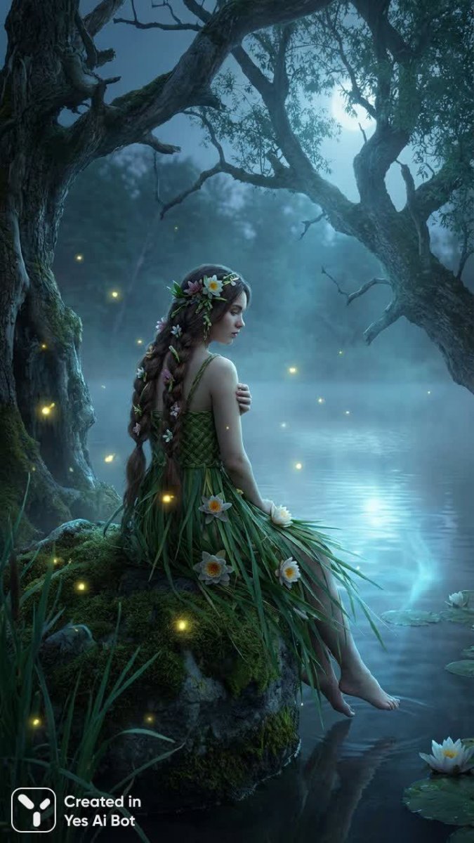 Загадочная русалка из славянского фольклора, воплощение водной стихии и неземной красоты, восседает на древнем камне у берега сверкающего озера. Ее длинные волосы струятся, словно водоросли, а платье, сотканное из гибких стеблей тростника, гармонично сливается с окружающей природой. В полумраке, окутывающем озеро, мерцают тысячи светлячков, создавая вокруг нее ауру волшебного сияния. Кажется, что она – дитя самой реки, дух воды, сотканный из света и теней. Ее взгляд полон таинственности и печали, в нем отражается древняя мудрость и неизгладимая связь с миром природы. Профессиональная фотография запечатлевает момент вечной красоты и загадки, передавая атмосферу славянской сказки и мистики. Это не просто изображение, а портал в мир легенд и преданий, где реальность переплетается с вымыслом, а красота приобретает потусторонний смысл. Она – олицетворение природной силы и женской грации, символ вечной тайны водной стихии. В ее облике сочетаются хрупкость и мощь, нежность и опасность, притягивая взгляд и пробуждая воображение. Этот образ - квинтэссенция славянского фольклора, запечатленная в неповторимом свете и композиции