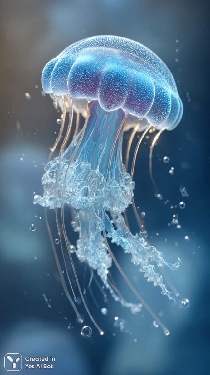 Завораживающее зрелище: медуза, сотканная из света и воды. В кристально чистой глубине плавно скользит этот небесно-голубой обитатель морских просторов, словно ожившая мечта. Полупрозрачный колокол пульсирует мягким неоновым сиянием, создавая эффект волшебного свечения в окружающем пространстве. Вокруг него танцуют мерцающие пузырьки, добавляя динамизма и легкости этой подводной сцене. Фотография выполнена в студийных условиях с поразительной фотореалистичностью, демонстрируя мельчайшие детали структуры медузы и игру света на ее поверхности. Создана с использованием профессиональной камеры Canon EOS R5 и объектива 100mm f/2.8, что позволило запечатлеть удивительную красоту и грацию этого существа. Угол съемки акцентирует внимание на плавности движений и подчеркивает неземную, эфемерную красоту медузы, словно она парит в невесомости. Это не просто изображение – это погружение в сказочный подводный мир, наполненный спокойствием и волшебством. Каждая деталь продумана до мелочей, чтобы зритель почувствовал себя частью этого удивительного момента. Невероятная чистота воды, мягкое освещение и идеальная композиция создают ощущение гармонии и умиротворения. Этот снимок – настоящий шедевр фотоискусства, демонстрирующий красоту природы в ее наиболее изящной форме. Это визуальное воплощение грации, света и движения в подводном царстве