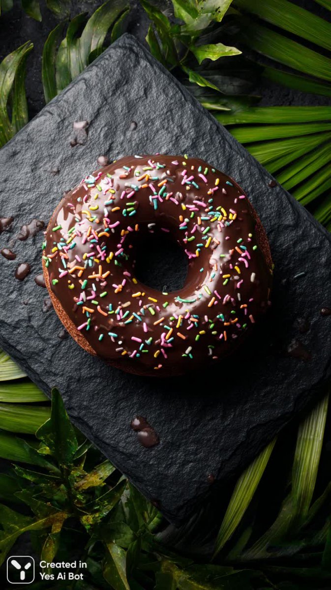 Изысканный шоколадный пончик с яркими разноцветными посыпками – настоящее произведение кулинарного искусства, представленное в деталях благодаря высококачественной студийной фотографии. Натуральный цвет глазури насыщенного коричневого оттенка эффектно контрастирует с темной каменной тарелкой из сланец, создавая визуально привлекательную композицию. Глубокий зеленый фон подчеркивает яркость пончика и добавляет снимку глубины благодаря мягким теням, которые деликатно моделируют форму изделия. Фотография выполнена в реалистичном стиле с использованием профессионального оборудования – камеры Sony A7 III и объектива 35mm, что обеспечивает потрясающую детализацию и четкость каждой крошки посыпки, каждой трещинки глазури и каждой текстуры теста. Это не просто пончик, это воплощение аппетитного совершенства, запечатленное для истинных ценителей высокой кухни и безупречной фотографии. Идеальный кадр для рекламы кондитерских изделий или для украшения меню ресторана, демонстрирующий свежесть и привлекательность продукта. Снимок вызывает желание немедленно попробовать этот восхитительный десерт, ощутить его мягкость и сладость, насладиться яркими красками и неповторимым ароматом. Это визуальное воплощение гастрономического удовольствия