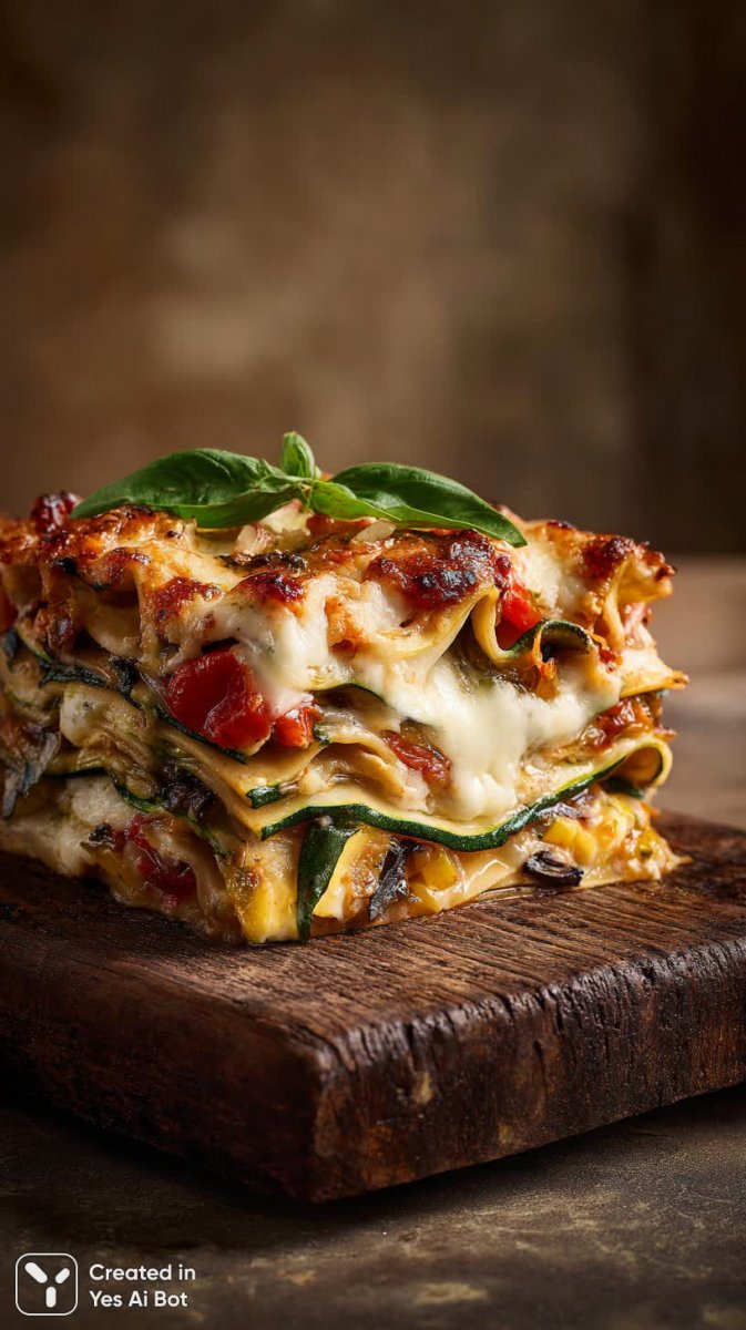 Изысканная овощная лазанья с базиликом и моцареллой: фотореалистичный шедевр - Картинка, созданная ИИ Midjourney