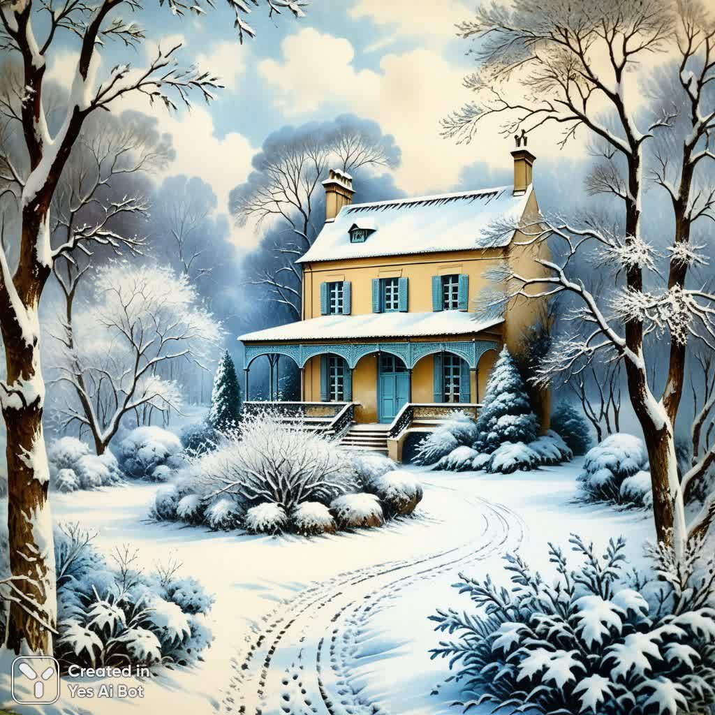 Зимний сад в стиле шаби-шик: винтаж, антиквариат и текстильные рисунки Тоаль де Жую - Пример изображения, сгенерированного нейросетью Stable Diffusion