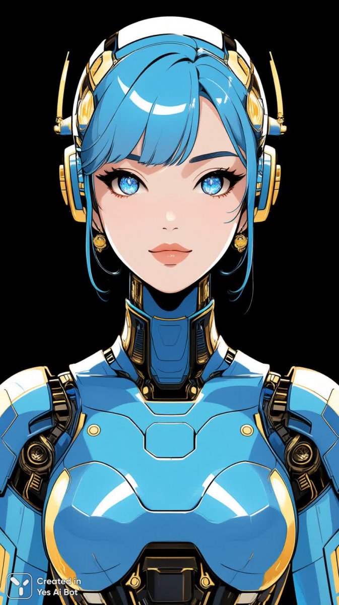 qwen Роботом-футуристическая красавица в сине-золотой палитре и стиле киберпанк. Генерация из нейросети QWEN