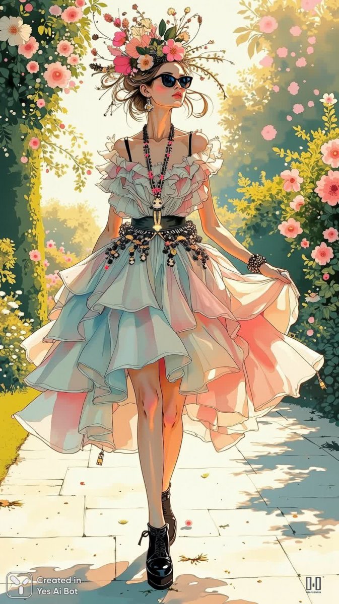 Парижский сад: танец в объятиях моды и фантазии - Пример работы ИИ Flux.1