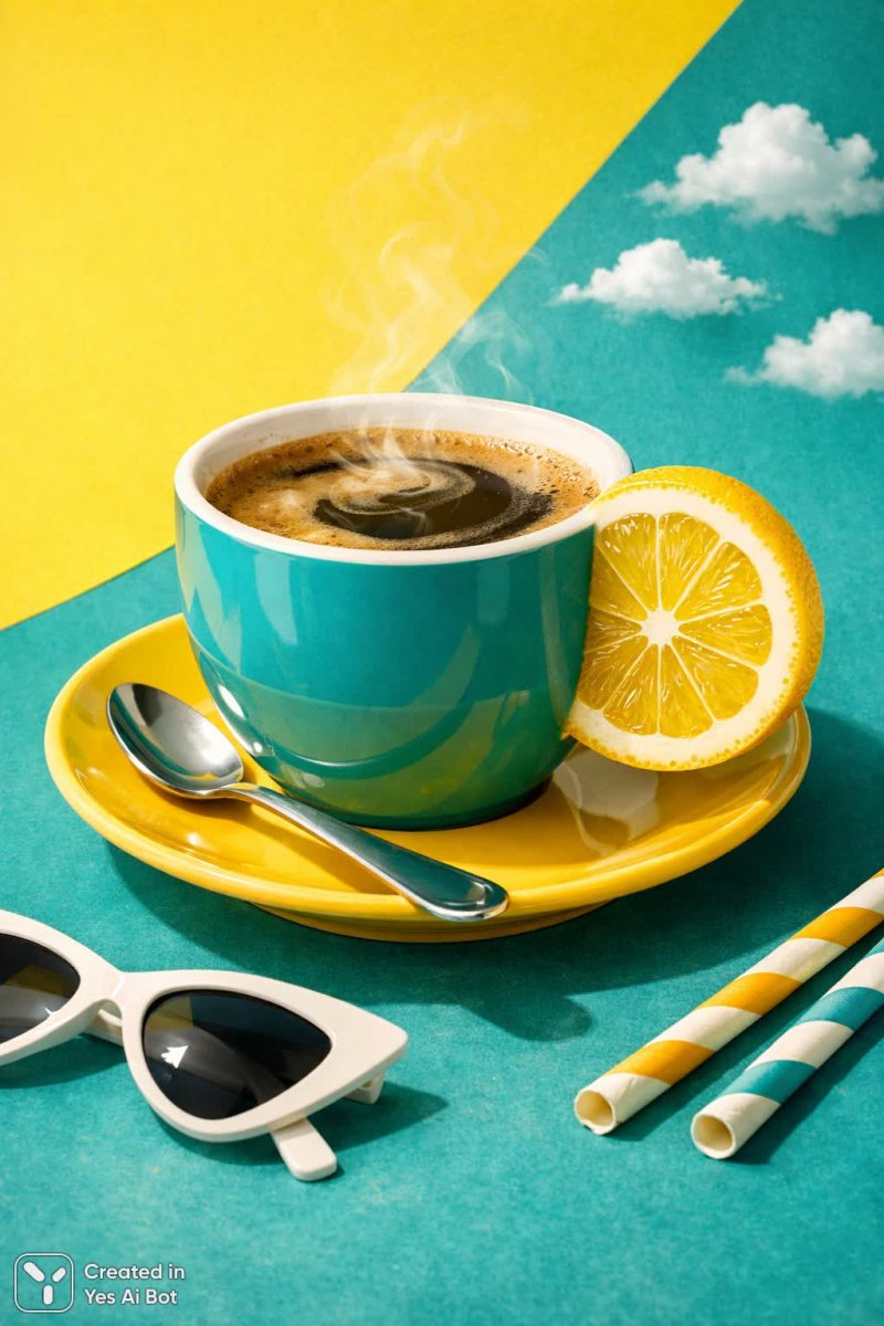 Лимонный кофе: сюрреалистичный утренний шедевр с яркими деталями и мягким освещением - Генерация в нейросети Sora Ai Images