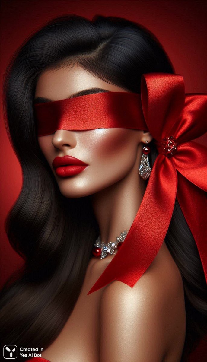 Завораживающий портрет женщины, исполненный с поразительной детализацией, пленяет своей красотой и загадочностью. Длинные темные волосы, окутанные яркими ало-красными атласными лентами, скрывают глаза и голову, создавая атмосферу тайны и нежности. Кожа сияет мягким светом, подчеркивая безупречность черт лица, а смелый оттенок помады добавляет образу дерзости и элегантности. Большой сверкающий атласный бант из паеток, грациозно завязанный на шее, служит ярким акцентом, привлекающим внимание к декольте. Идеальный однотонный алый фон создает ощущение легкости и воздушности, позволяя зрителю полностью сосредоточиться на модели. Блики драгоценностей добавляют портрету роскоши и изысканности. Снято на камеру Canon EOS R5 с объективом RF 85mm f/1.2L при мягком равномерном студийном освещении, что позволило добиться потрясающей четкости и глубины изображения. Этот образ – воплощение женственности, силы и неповторимого стиля, запечатленное в мельчайших деталях с использованием передовых технологий фотоискусства. Картина излучает чувственность и элегантность, оставляя неизгладимое впечатление своей красотой и гармонией. Это не просто портрет – это история, рассказанная языком света и цвета