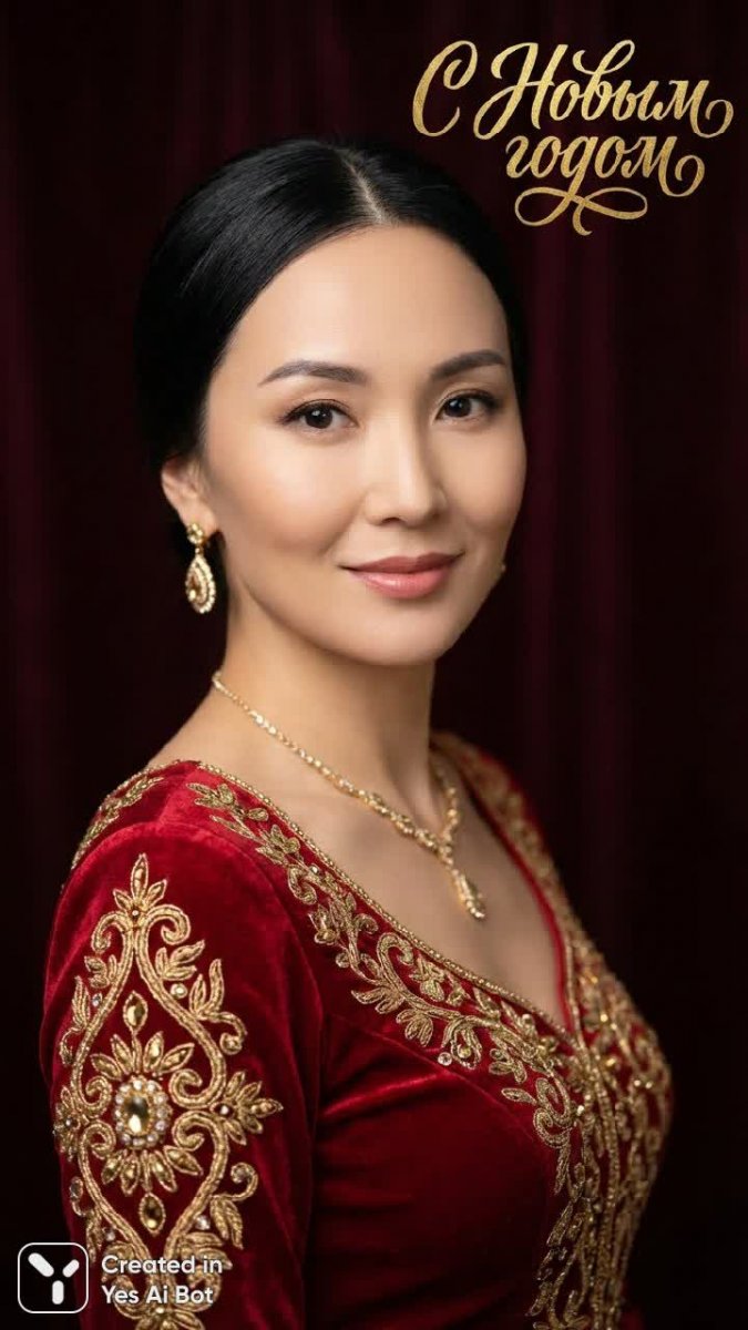nanobanana Новогодняя элегантность: портрет русской красоты в алом платье. Картинка из нейронной сети Нано Банана
