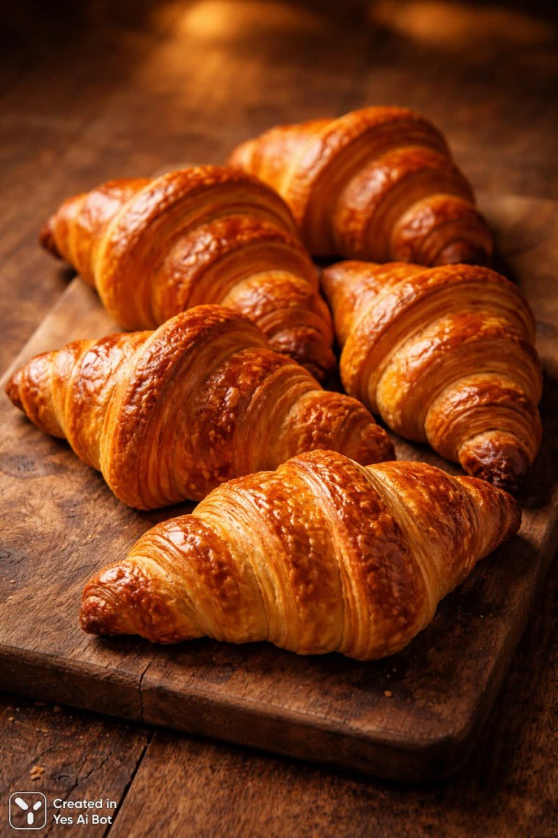 Изысканные круассаны: золотистый цвет и хрустящие слои в студийной съемке - Изображение, созданное нейросетью Sora Ai Images