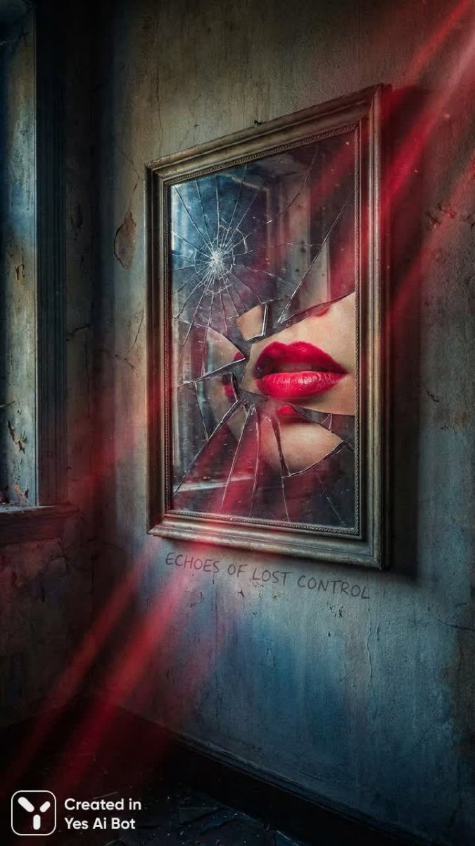 Зеркало разбитых отражений и ярких губ: повесть о тоске и потере контроля - Картинка, созданная ИИ Nano Banana
