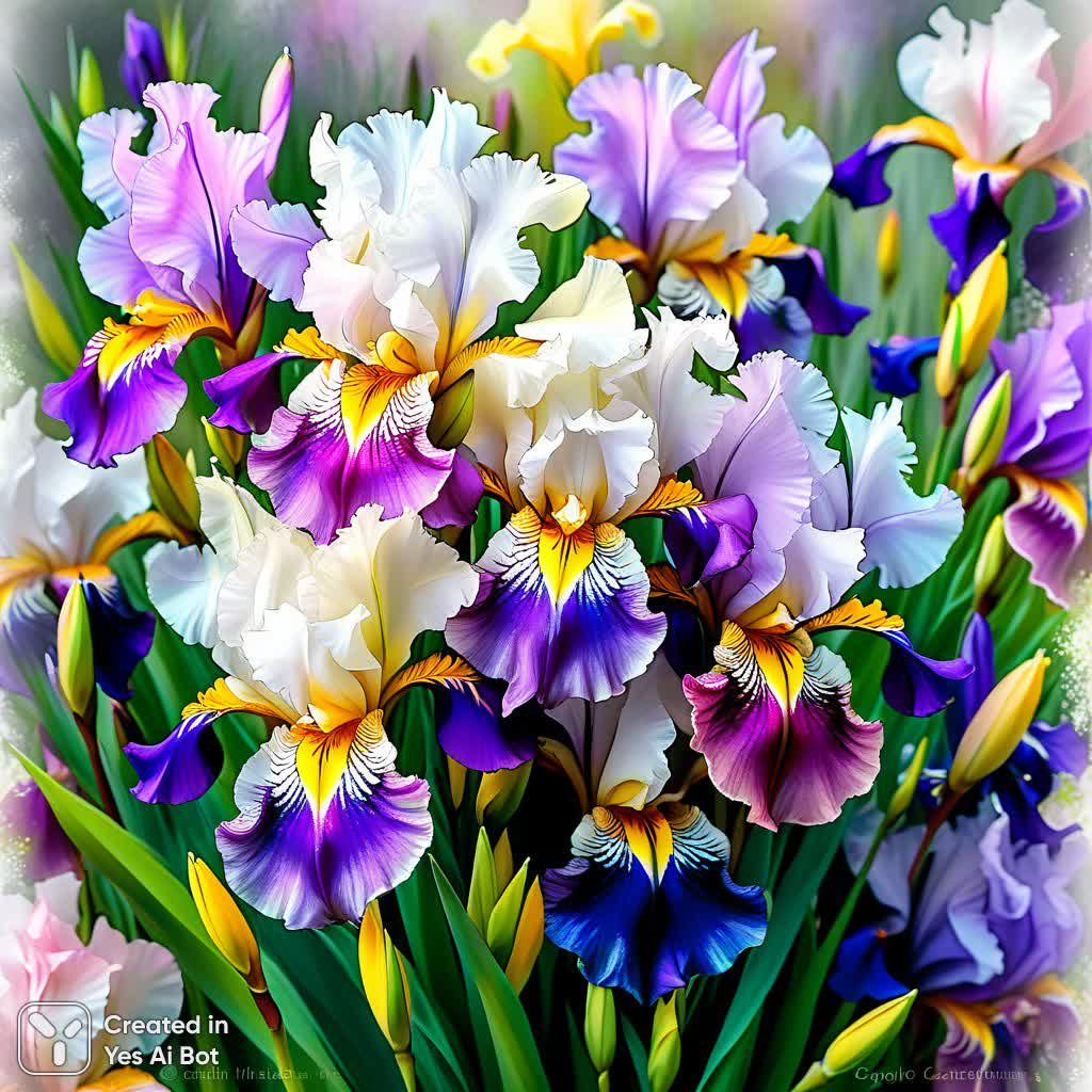 stable diffusion Изысканный букет ирисов: нежность в акварельных мазках и ультравысокой четкости. Генерация из нейросети Stable Diffusion