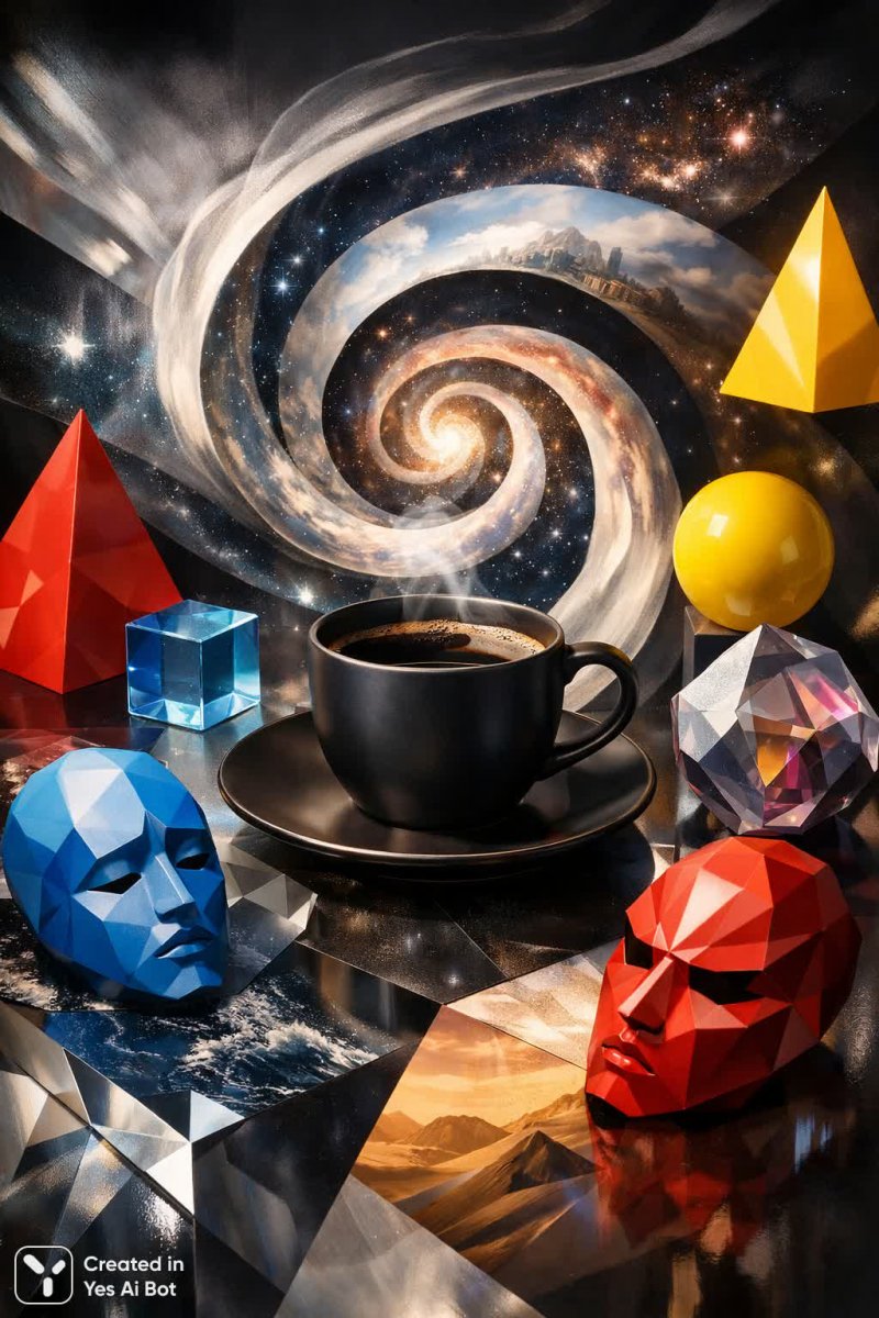 Кофе, геометрия и сновидения: визуальная симфония чувств и реальности - Генерация в нейросети Sora Image