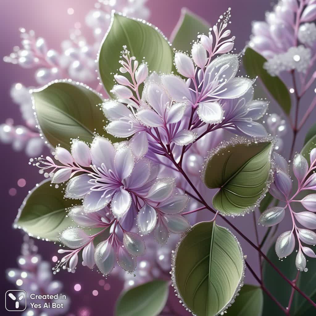 мягкие линии, тонкая прорисовка, мягко, гармония, атмосферно, фон бархат, гипсофила, крупная сирень, листья, макро, цвета нежно-розовый перламутровый, оливковый, мягкие листья, блеск, пушистая глиттерная пастель, шедевр, digital-art, 3D, лучшая картина, серебряный контур