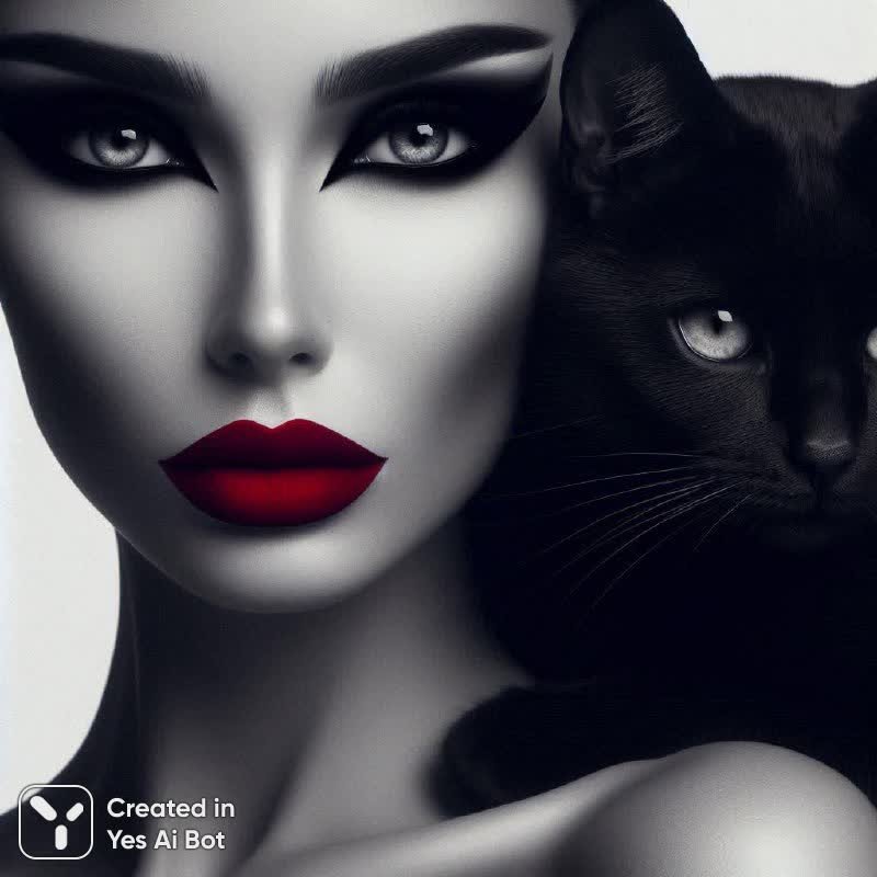 Загадочная красотка в драматичном макияже – глубокий черный цвет глаз и страстный красный оттенок губ – предстает перед зрителем в элегантном кружевном наряде. Ее слегка наклоненная голова добавляет образу задумчивости и некоторой отстраненности, словно она скрывает тайну. Рядом с ней примостился черный кот, чья темная шерсть создает гармоничный контраст с бледным фоном. Крупный план фотографии позволяет рассмотреть мельчайшие детали: текстуру кружева, выразительность взгляда женщины и блеск кошачьих глаз. Белый фон подчеркивает атмосферу таинственности и загадочности, фокусируя все внимание на лице модели и усиливая ощущение интриги. Изображение пронизано чувственностью и драматизмом, создавая впечатление о сильной и независимой личности, окруженной миром темных секретов и скрытых желаний. Эта фотография – не просто портрет, это история, рассказанная без слов, повествующая о красоте, загадке и притягательной силе женской тайны. В ее взгляде читается глубина чувств, а в каждом движении - уверенность и грация. Кот, как верный спутник, добавляет образу завершенности и усиливает ощущение таинственности происходящего