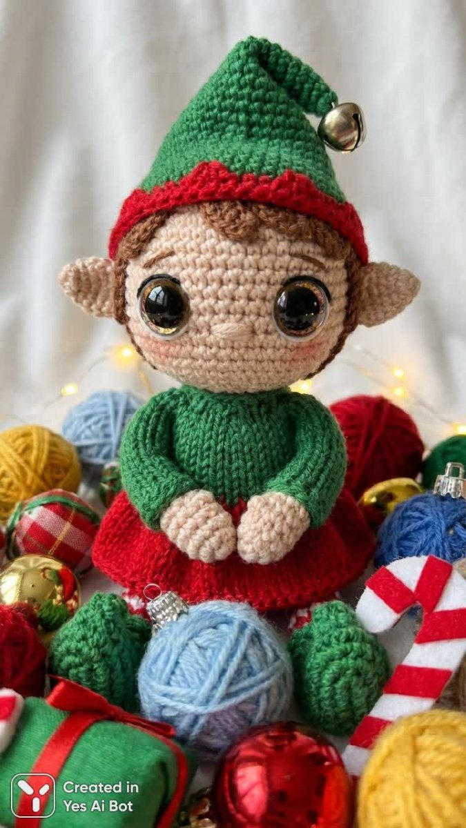 nanobanana Новогодняя кукла ручной работы в сказочном образе эльфа, полная радости и праздничного настроения. Генерация из нейросети Nano-Banana