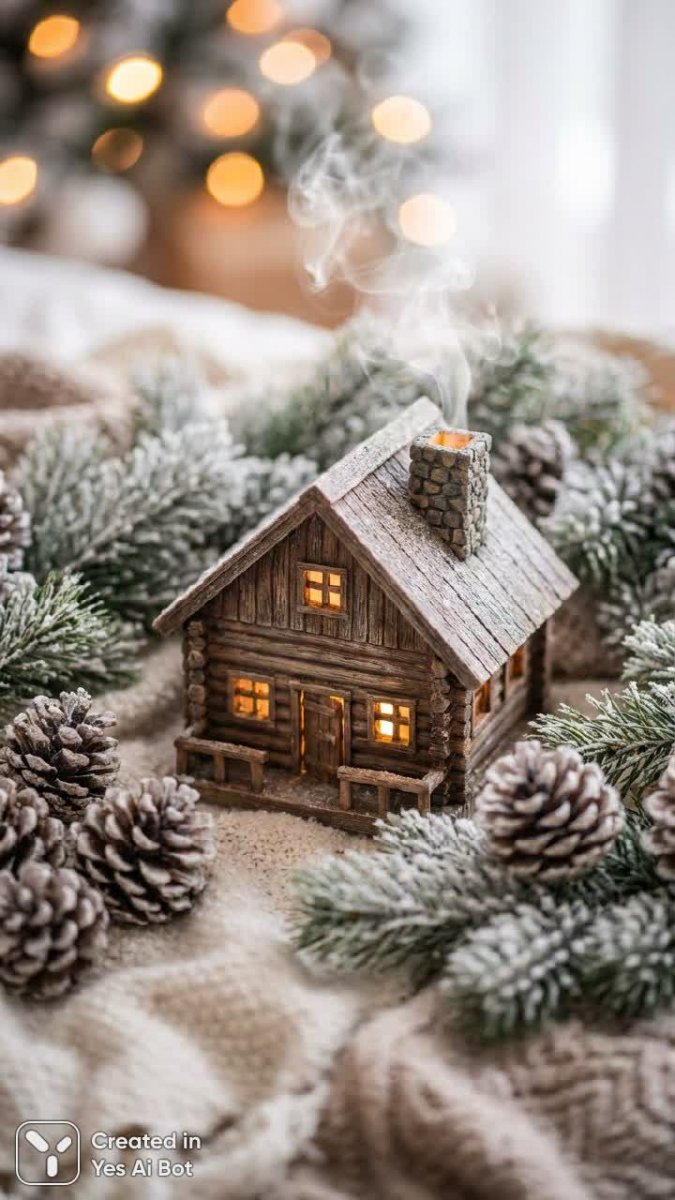 nanobanana Уютная зимняя сказка: маленький домик в заснеженном лесу с дымком из трубы. Нейросеть Nano-Banana