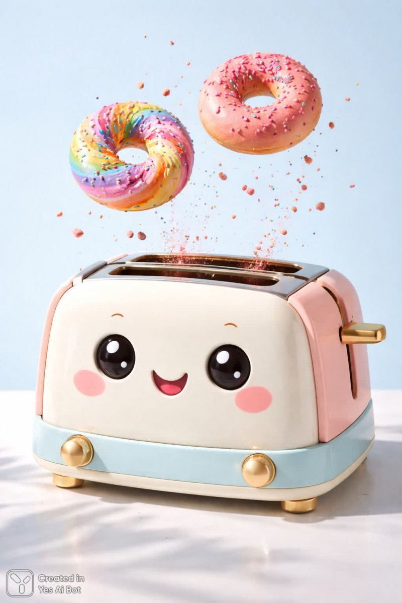 Веселый тостер: радужные булочки и игривый дизайн - Пример работы ИИ Sora Images