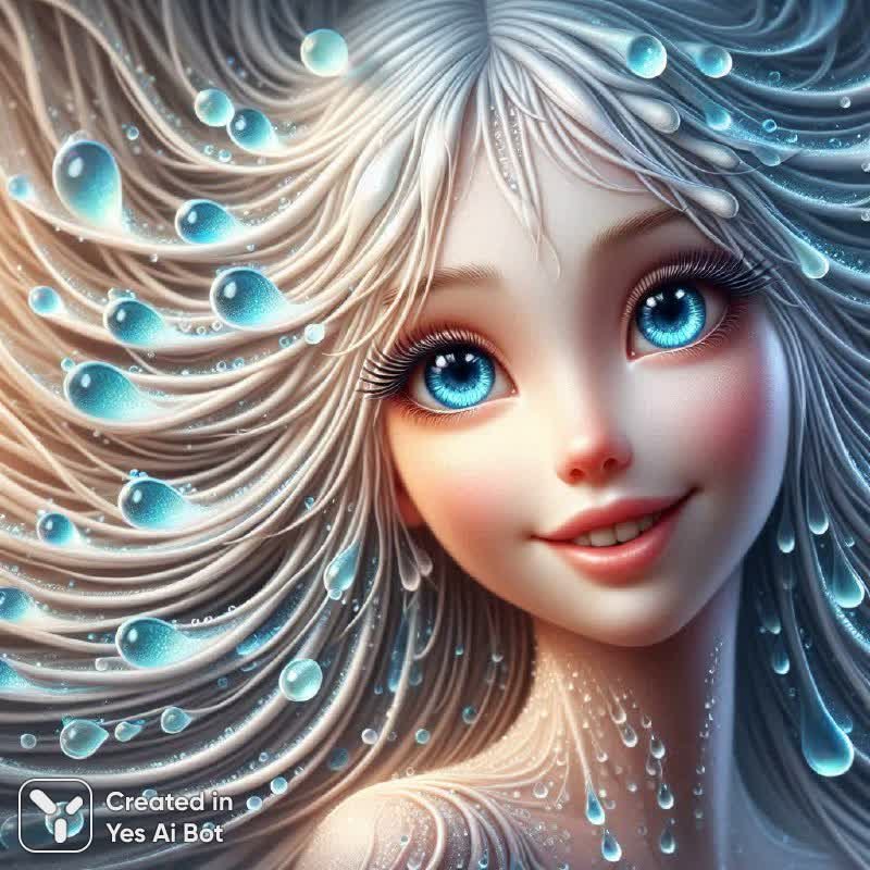 Неземная красота в каждом взгляде – завораживающий портрет девушки, сотканный из мечты и фантазии. Ее длинные волосы превратились в водопад сверкающих капель, переливающихся всеми оттенками света, словно застывшая мелодия дождя. Огромные голубые глаза излучают внутренний мир, полный загадок и нежности, а легкая улыбка на губах обещает раскрыть тайны, скрытые за этой хрупкой красотой. Кожа девы кажется невесомой, прозрачной, словно лепесток цветка, сотканный из лунного света. Вместо привычных волос – причудливые косы, сплетенные из капель-бусин, создающие ощущение эфемерности и нереальности. Это не просто девушка, а воплощение сказочного существа, обитающего в мире грез и волшебства. Ее образ вызывает трепетное восхищение и желание прикоснуться к этой хрупкой красоте, ощутить легкость и невесомость, словно растворившись в потоке капель. Она – олицетворение чистоты и невинности, прекрасная как первый луч солнца после долгой ночи, загадочная как шепот ветра в кронах деревьев. В ее взгляде читается мудрость веков и наивная детская радость, переплетающиеся в гармоничный узор. Этот портрет – гимн красоте, не знающей границ и рамок, воплощение мечты о совершенстве, запечатленное на холсте фантазии