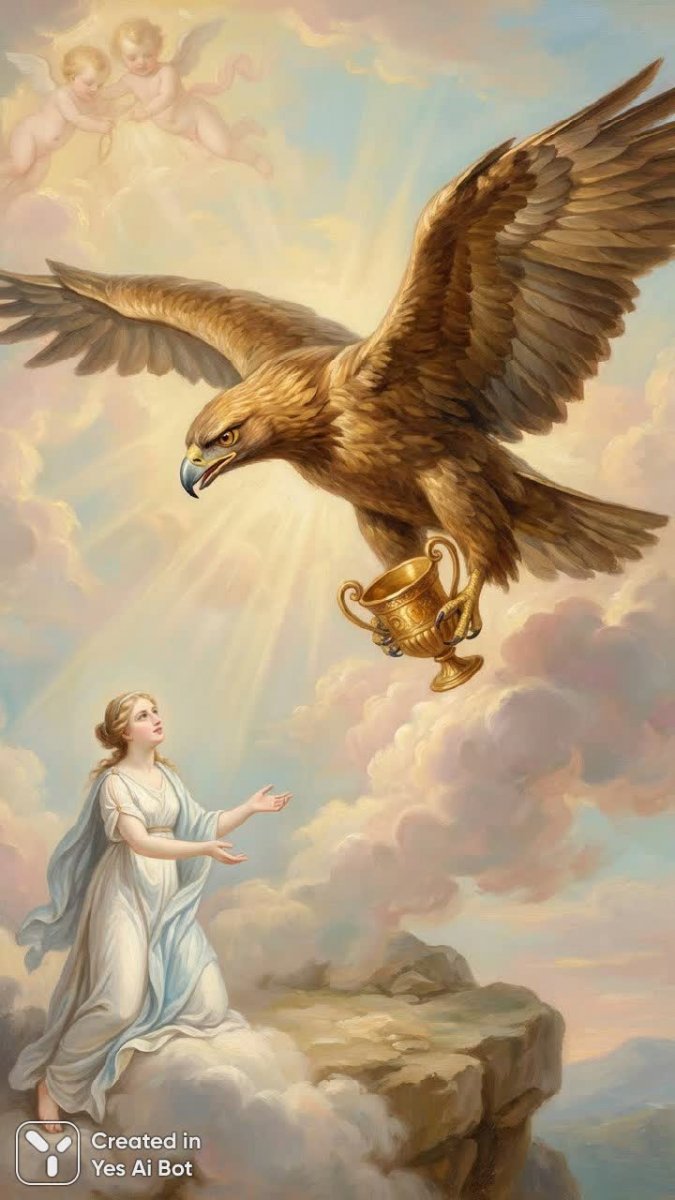 Орел, Психея и небесная чаша: мифологическая сцена в стиле Бенджамина Уэста - Картинка, созданная ИИ Нано Банана