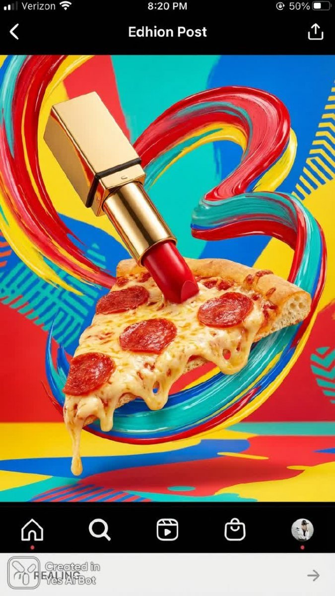 Невероятное слияние двух противоположных миров в яркой и запоминающейся поп-арт композиции. Губная помада трансформируется в аппетитный кусок пиццы, где хрустящая корочка служит смелым фоном для буйства красок. Эта сюрреалистическая картина захватывает взгляд своей неожиданной метаморфозой и мастерским исполнением. Четкая фокусировка и яркое студийное освещение подчеркивают детали и создают ощущение реалистичности, несмотря на фантастический сюжет. Изображение излучает игривость и креативность, предлагая зрителю задуматься о связи между красотой, удовольствием и повседневными радостями жизни. Это не просто картина, а визуальный парадокс, вызывающий улыбку и восхищение одновременно. Необычное сочетание элементов демонстрирует оригинальное видение художника и его умение создавать произведения искусства, которые запоминаются надолго. Яркие цвета и динамичная композиция делают эту работу настоящим украшением любой коллекции современного искусства, отражая дух творчества и инноваций в мире визуальных образов. Это смелое заявление о свободе самовыражения и безграничных возможностях воображения