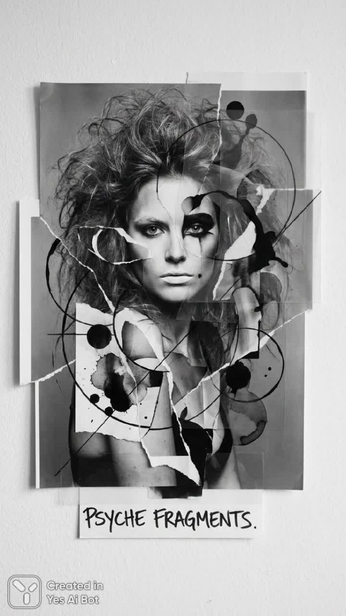 Работа является метафорой, погружающей зрителя в мир подсознания, где реальность смешивается с фантазией, а привычные образы обретают новые значения. Фотография выступает как инструмент для исследования внутреннего 'я', провоцируя размышления о природе личности и границах восприятия. Каждое изображение является частью сложного повествования, требующего интерпретации символики и поиска скрытых смыслов в деталях, предлагая зрителю вступить в диалог с собой и окружающим миром. Искусственный интеллект создал это произведение, используя промт с ключевыми словами: черно-белый коллаж, женщина с растрепанными волосами, лицо, объединенное с абстрактными формами, контрастный макияж, художественная фотография, психологический концепт, многослойные изображения, сюрреализм, динамичная композиция, выразительный взгляд.