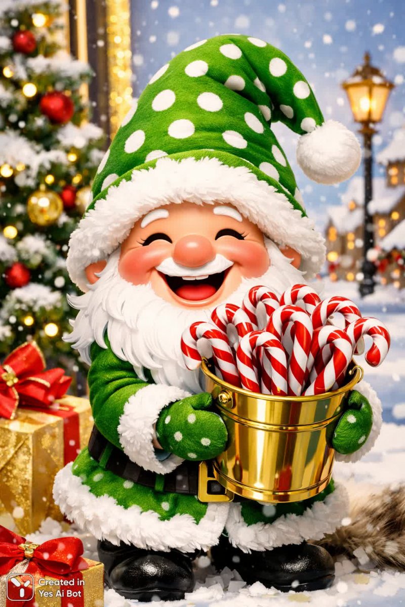 sora Веселый гном с леденцами и праздничным настроением зимой. Генерация из нейронной сети Sora Image
