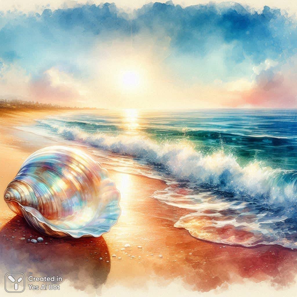 Безмятежное великолепие морского побережья запечатлено в этой картине. Теплые лучи солнца ласково озаряют золотистый песок, на котором покоится огромная раковина с нежным перламутровым отливом – словно дар самого моря. Волны мягко накатывают на берег, создавая умиротворяющий звук и ритм, а вдалеке горизонт растворяется в легкой дымке, добавляя изображению загадочности и глубины. Это мгновение абсолютного покоя и гармонии с природой – идеальный фон для размышлений или просто наслаждения летним теплом. Здесь время замедляет свой бег, позволяя полностью погрузиться в атмосферу беззаботности и умиротворения. Кажется, что можно почувствовать легкий морской бриз и услышать шепот волн, а перламутровая раковина хранит в себе тайны океана и бесконечные истории о приключениях и путешествиях. Идиллия летнего дня, запечатленная во времени – это возможность на мгновение забыть обо всех заботах и окунуться в мир красоты и спокойствия. Ощущение тепла и света наполняет каждую деталь этого пейзажа, создавая неповторимую атмосферу уюта и гармонии с окружающим миром