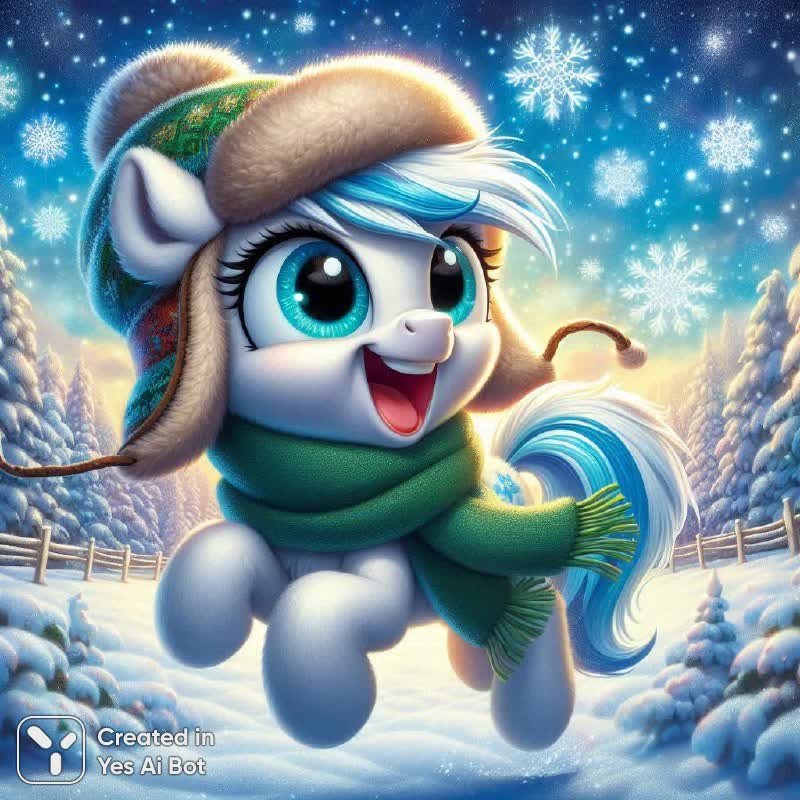 Очаровательная пони, словно сошедшая с экрана мультфильма Pixar, излучает тепло и радость в заснеженном зимнем пейзаже. Ее большие бирюзовые глаза полны веселья, а пушистая шапка и шарф добавляют образу уюта и сказочности. Динамичная поза передает ощущение движения и энергии, словно пони вот-вот отправится в захватывающее приключение по заснеженному лесу. Вокруг нее кружатся легкие снежинки, создавая волшебную атмосферу зимней сказки. Яркие насыщенные цвета делают изображение особенно привлекательным и запоминающимся. Эта дружелюбная пони – настоящий символ удачи и позитива, готовый подарить хорошее настроение каждому зрителю. Ее улыбка заразительна, а общая атмосфера картины наполнена волшебством и ожиданием чуда. Кажется, что этот персонаж готов стать верным другом и надежным спутником в любых приключениях, согревая своим теплом даже в самый холодный зимний день. Это визуальное воплощение мечты о сказочном мире, где доброта и радость всегда побеждают