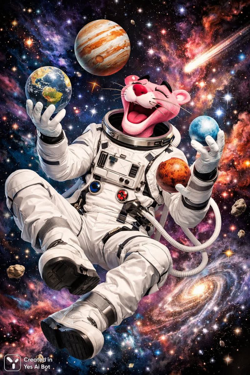 Розовый пантера в космосе: хаотичное веселье и межпланетный цирк - Картинка, созданная ИИ Sora Image