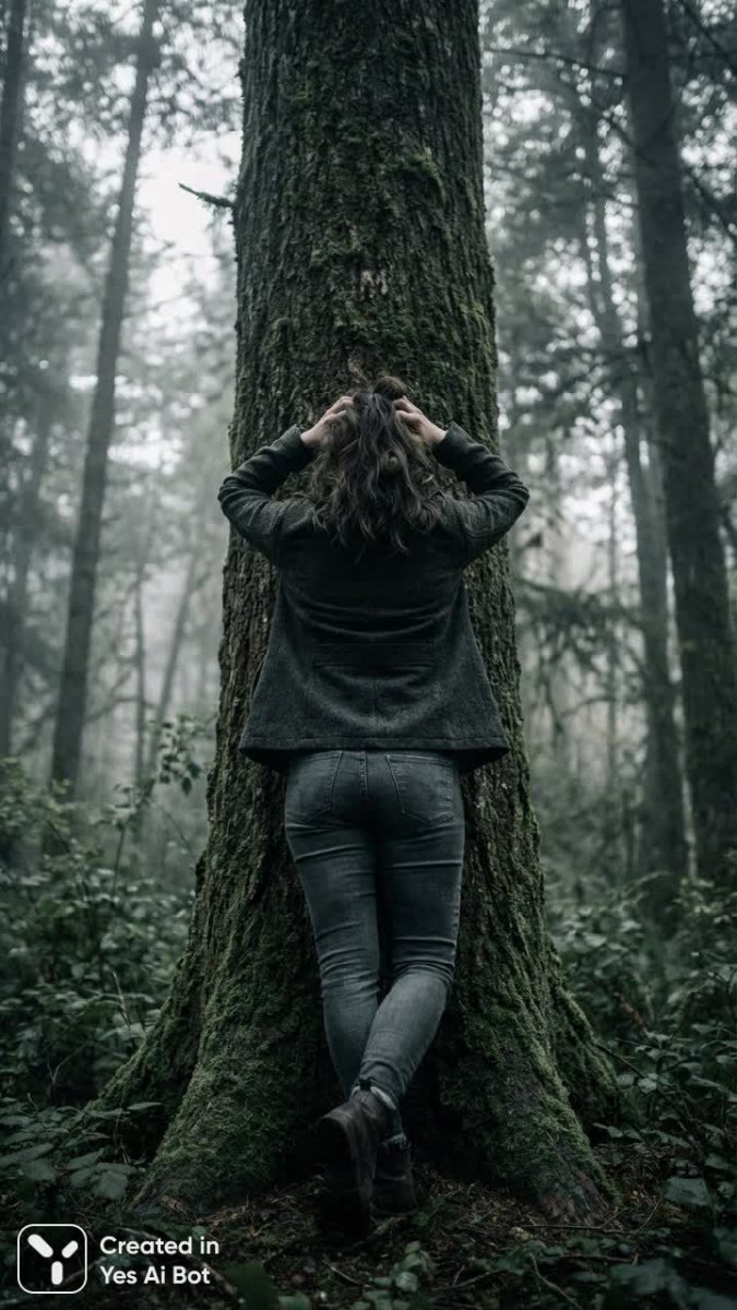 Эффектный силуэт у дерева: взгляд со спины - Картинка, сгенерированная нейросетью Nano-Banana