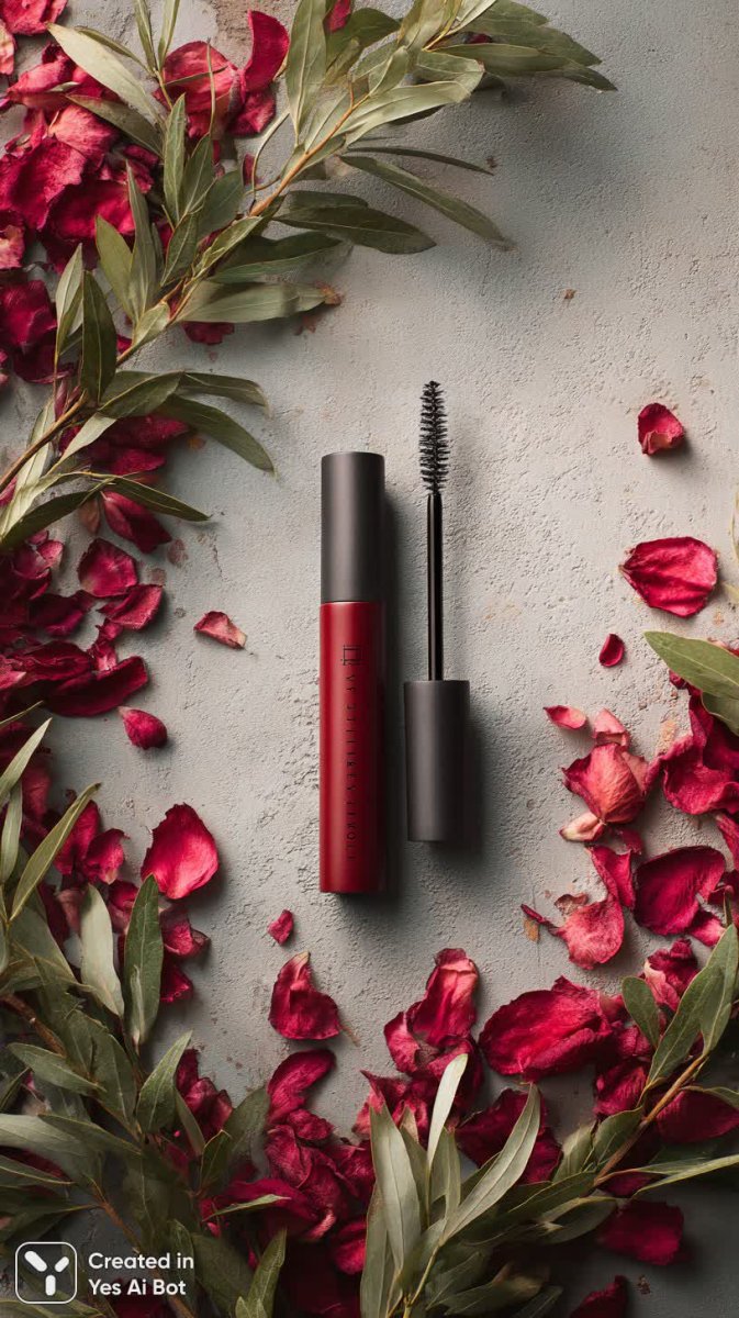 Изысканная композиция, посвященная безупречному образу туши насыщенного бордового оттенка. В центре внимания – элегантный тюбик, уверенно стоящий на фоне нежных лепестков роз и мягкой зелени, создающих атмосферу романтики и утонченности. Мягкий естественный свет подчеркивает роскошный контраст цветов и гладкую текстуру поверхности продукта, приглашая прикоснуться к миру красоты и стиля. Эта визуализация станет идеальным решением для рекламных кампаний косметических брендов, демонстрации продукции в магазинах или создания привлекательного контента для социальных сетей. Акцент сделан на премиальном качестве и эстетической привлекательности товара, что позволяет эффективно донести до потребителя идею о безупречном макияже и неповторимом образе. Композиция располагает к себе, вызывая приятные ассоциации с женственностью, элегантностью и роскошью. Подчеркнутая простота и изысканность деталей создают ощущение легкости и естественности, что особенно важно для современных потребителей, ценящих натуральную красоту и качественные продукты. Идеально подходит для продвижения туши как символа уверенности и привлекательности, воплощенной в каждом взмахе ресниц