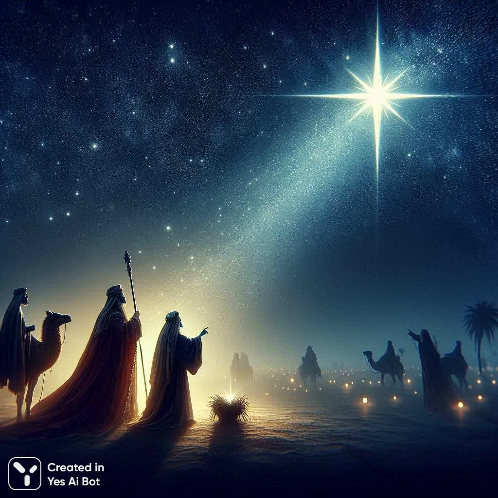 Вифлеемская звезда: Волхвы идут к свету Рождества - Пример работы нейросети Dalle