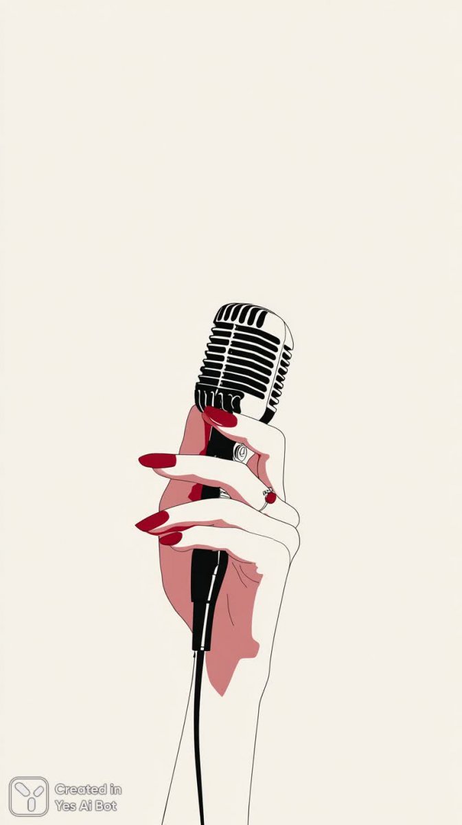 Игривая иллюстрация с намеком на ретро-эстетику и примитивизм. В центре композиции – рука, держащая черно-белый микрофон в полоску, что создает визуальный контраст и привлекает внимание. Акцент сделан на деталях: ярко-красный лак для ногтей на ногтях руки добавляет нотку игривости и индивидуальности, а белый фон подчеркивает чистоту и простоту формы. Стиль изображения выдержан в духе флэт-дизайна с использованием плоских фигур и упрощенных форм, что придает работе легкость и современность. Общее впечатление – это ощущение забавной и беззаботной атмосферы, наполненной юмором и творческим настроением. Композиция вызывает ассоциации с музыкальной индустрией, ретро-стилем и яркими личностями. Использование черно-белой гаммы в сочетании с акцентным цветом – красным – делает изображение динамичным и запоминающимся. Это визуально привлекательный элемент дизайна, который может быть использован для иллюстраций, рекламы или оформления социальных сетей, передавая ощущение легкости, креативности и позитива. Работа идеально подойдет для проектов, требующих неформального и оригинального подхода к дизайну