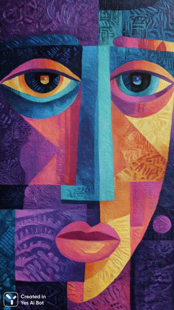 Лицо в пурпурном: геометрическая абстракция и сюрреализм - Картинка, созданная нейросетью Midjourney