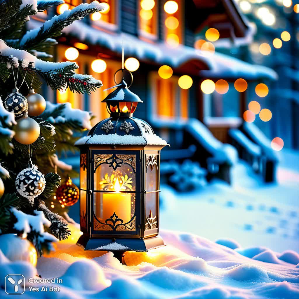Завораживающая зимняя сказка, сотканная из праздничного декора и реалистичной фотографии природы. В центре композиции – старинный фонарь с серебряным корпусом, украшенным филигранной растительной резьбой. Его внутренний свет, похожий на волшебную звезду, излучает мягкое янтарное сияние, которое контрастно выделяется на фоне холодного зимнего вечера. Большой розовый бант выполнен из роскошной ткани с мерцающим узором и сверкающей вышивкой. Еловая ветвь обильно покрыта пушистым реалистичным снегом, создавая ощущение морозной свежести. Нити жемчуга обладают мягким блеском, а хрустальные капли внизу ловят и преломляют свет, добавляя изображению искристости. На заднем плане – размытое мечтательное видение заснеженного леса на закате, окутанного таинственной дымкой. Атмосфера пронизана уютом, праздничным настроением и безмятежным спокойствием. Кажется, что время остановилось в этом волшебном уголке природы, где царит гармония света и тени, текстур и цветов. Это не просто фотография – это приглашение окунуться в мир зимней элегантности и ощутить тепло домашнего очага среди заснеженных пейзажей. Идеально передана игра света на различных поверхностях – металле фонаря, ткани бантов, хрустальных капель и пушистом снегу. Каждая деталь проработана с невероятной точностью, создавая ощущение реальности происходящего