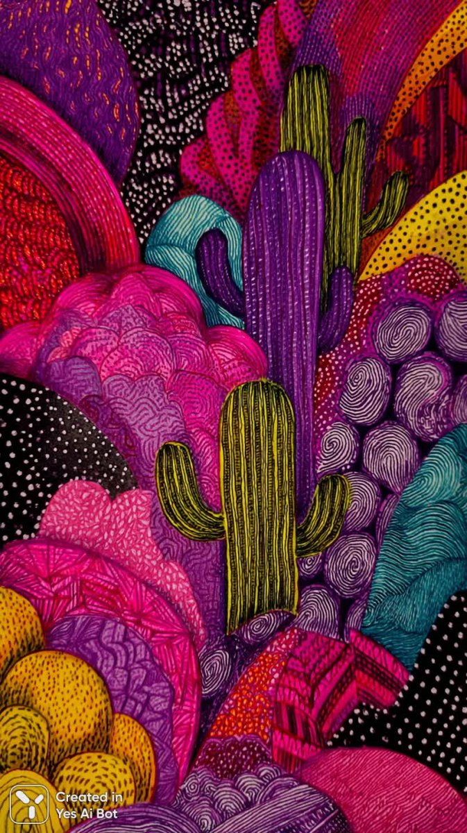 Яркий кактус: абстракция цвета и смелых узоров в современном стиле - Картинка, сгенерированная нейросетью Миджорни