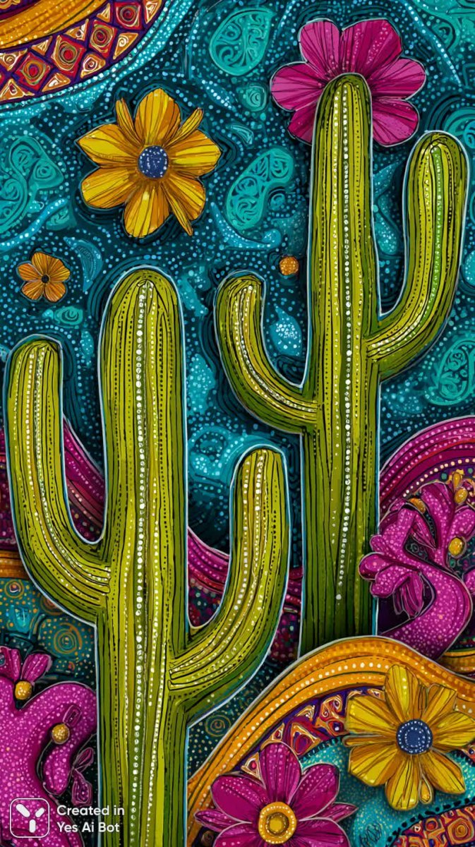 midjourney Кактус в ярких красках: игривый дизайн и современные мотивы. Генерация из нейросети Миджорни