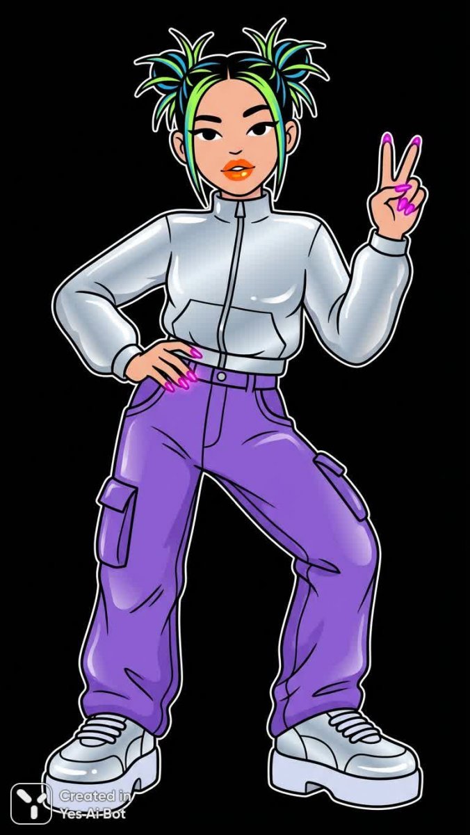 Яркий векторный персонаж в стиле плоского дизайна с акцентом на смелые контуры и эстетику начала нулевых годов. Девушка-мультяшница предстает перед зрителем в эффектной позе на фоне глубокого черного цвета, создавая контрастный и динамичный образ. Ее особенностью является выразительная электрически-оранжевая помада и сияющий фуксии маникюр, добавляющие образу дерзости и современности. Использование глянцевых бликов подчеркивает текстуру и объем, придавая изображению реалистичность и привлекательность в высоком разрешении HD. Вся композиция пронизана духом Y2K – эпохи ярких красок и смелых экспериментов с модой и стилем. Этот персонаж идеально подойдет для использования в дизайне веб-сайтов приложений иллюстраций или других медиапроектах, требующих запоминающегося и энергичного визуального решения. Он станет отличным акцентом в любом проекте, добавляя нотку игривости и современности. Вниманию зрителя предлагается стилизованный образ молодой девушки с яркой индивидуальностью, воплощенной в четких линиях и насыщенных цветах. Дизайн выполнен в технике векторной графики, что позволяет легко масштабировать изображение без потери качества, сохраняя при этом все детали и яркость цветов