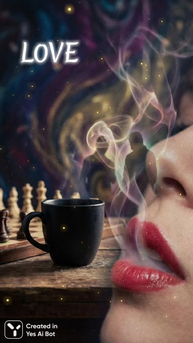 Загадочная сцена, сотканная из элементов реальности и сновидений, где обыденность встречается с символизмом чувств. Матовый черный кофейный стакан, словно застывшая мысль, стоит рядом с шахматной доской – полем стратегических решений и жизненных перипетий. В центре внимания – чувственные красные губы, выразительные и манящие, они являются ключом к эмоциональному бушующему миру, скрытому под поверхностью. Вокруг царит завораживающая атмосфера: приглушенные фигуры, словно тени прошлого или будущего, закручиваются в танце под вихрем полутонов. Искрящиеся вспышки света пробиваются сквозь этот туман, создавая ощущение нереальности, как будто зритель попал в параллельный мир, где эмоции обретают материальную форму. Над всем этим хаосом и красотой парит надпись 'L0VE' – лаконичное, но емкое послание, которое может быть истолковано по-разному: как признание в любви, как ее поиск или даже как разочарование. Эта фраза становится кульминацией всей композиции, придавая ей глубину и многогранность. Вся картина пронизана ощущением мимолетности, хрупкости и внутренней борьбы. Это визуальная метафора человеческих отношений, где страсть переплетается с загадкой, а реальность растворяется в мире грез. Она заставляет задуматься о природе любви, ее силе и ее противоречивости, оставляя после себя долгое эхо пережитых эмоций. Этот образ – воплощение тайны, привлекательности и вечной темы человеческих чувств, представленной в необычном и запоминающемся видении