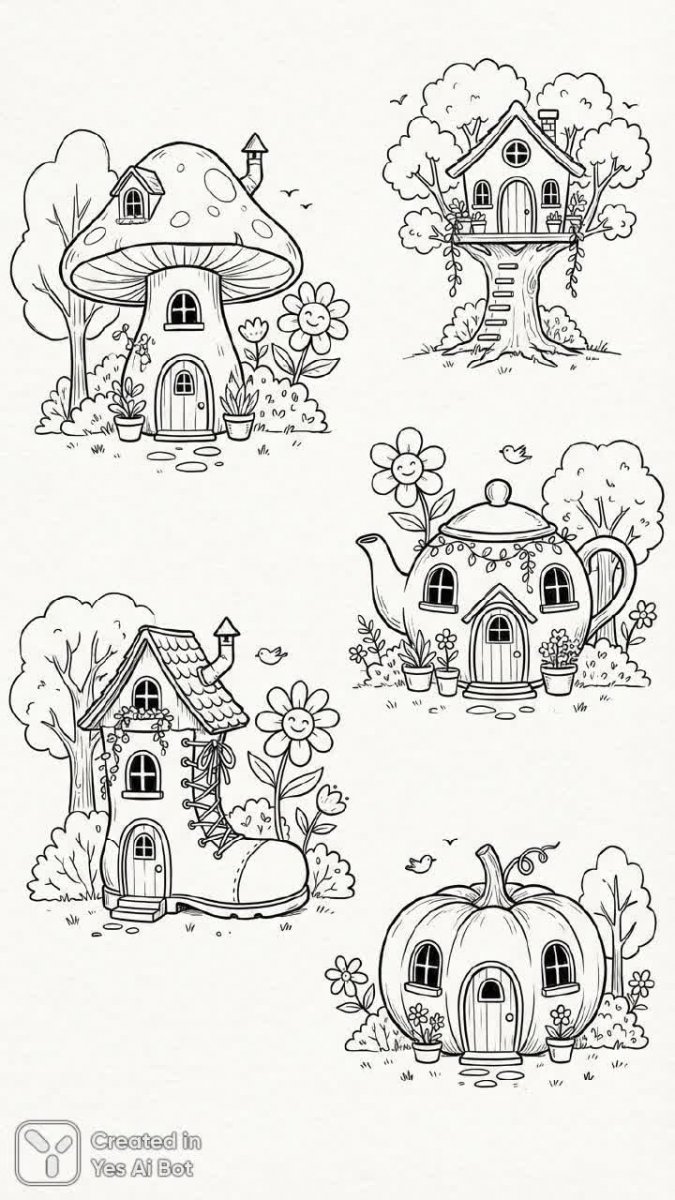 Уютные сказочные домики, бережно нарисованные черной ручкой, создают атмосферу очарования и нежности. Их минималистичный стиль подчеркнут изяществом простых линий, а игривая и дружелюбная эстетика пробуждает в сердце ребенка. Каждый дом словно сошел со страниц любимой сказки, излучая тепло и гостеприимство. Одиноко стоящие на белом фоне, они выглядят особенно выигрышно, обрамленные обилием зелени – растений, которые добавляют композиции живости и свежести. Это не просто изображения домов, а целая галерея добрых сказок, воплощенных в графике. Простота форм сочетается с вниманием к деталям, создавая неповторимый шарм каждого домика. Это визуальное олицетворение мечты о тихом уголке, где царят покой и гармония, а каждый день наполнен волшебством. Они словно приглашают нас заглянуть внутрь и почувствовать атмосферу домашнего уюта, тепла и безграничного счастья, которые дарит сказочный мир. Легкость линий создает ощущение воздушности и невесомости, позволяя каждому домику парить в своем собственном пространстве, наполненном светом и радостью. Эта коллекция – прекрасный подарок для тех, кто верит в чудеса и ценит красоту простых вещей
