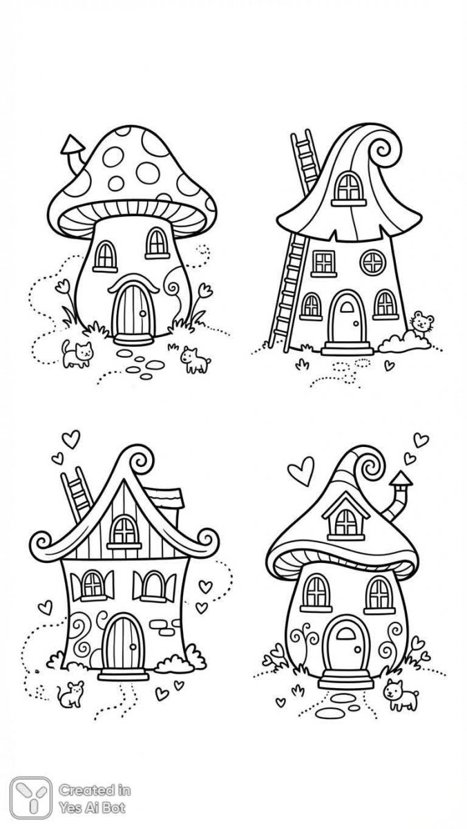 Милые сказочные домики оживают на белоснежном фоне! Эта коллекция рисунков создана в минималистичном стиле с использованием простых линий и очаровательных деталей. Каждый дом – это маленький мир фантазий, наполненный игривыми элементами декора и оригинальными дизайнерскими решениями. Подходит идеально для детских раскрасок, где юные художники смогут дать волю своему воображению и добавить ярких красок в эти волшебные жилища. Простые формы и четкие контуры делают эту серию идеальной для самых маленьких – легко раскрашивать и очень весело представлять истории о жителях этих уютных домиков. Это не просто рисунки, это портал в страну чудес, где каждый дом хранит свою неповторимую сказку. Почувствуйте атмосферу тепла и уюта, созданную с любовью к деталям и заботой о детском творчестве. Идеальный выбор для развития мелкой моторики и воображения ребенка, а также отличный способ весело провести время в компании семьи или друзей. Эти домики – воплощение мечты о собственном сказочном уголке, где всегда царит радость и хорошее настроение