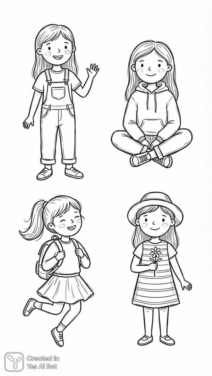 nanobanana Милые девочки в простом стиле для раскрашивания и дизайна. Генерация из нейронной сети Nano Banana