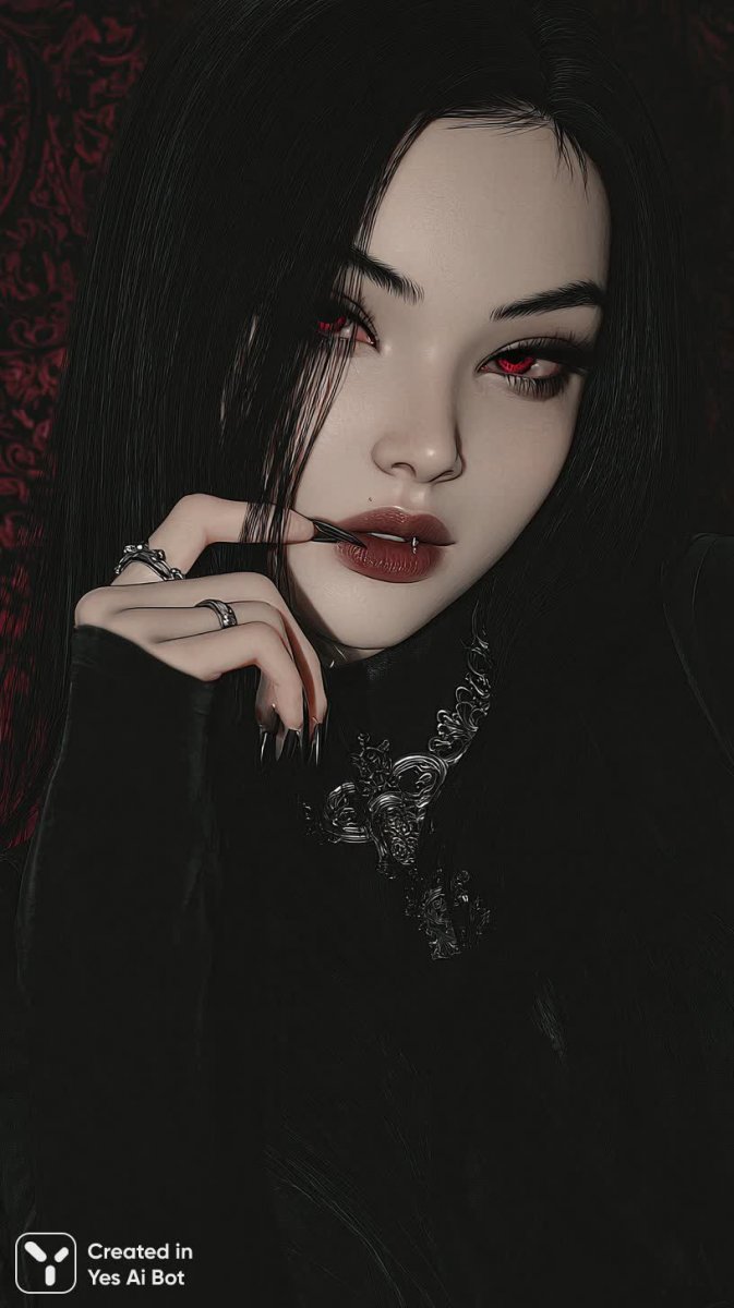 Яркая и дерзкая героиня в стиле аниме предстает перед нами с завораживающим контрастом черт лица и внешности. Ее длинные угольно-черные волосы обрамляют лицо, на котором играет озорная улыбка, выдающая игривый характер. Особое внимание привлекают глаза – необычное сочетание гетерохромии, одно из которых пылает огненно-красным цветом, а другое словно поглощает тьму, добавляя образу загадочности и опасности. Акцент на выразительный макияж с яркими тенями подчеркивает ее индивидуальность и неординарность. Черный наряд создает ощущение таинственности и элегантности, гармонично сочетаясь с острыми ногтями, усиливающими эффект соблазна. Детализированная цифровая иллюстрация в стиле аниме с четкими контурами передает динамику и энергию персонажа. Присутствие клыков намекает на ее сверхъестественную природу, добавляя элемент готики и мистики. Эта девушка – воплощение бунтарства, красоты и скрытой силы, сочетающая в себе нежность и опасность, создавая незабываемый образ, который захватывает дух и заставляет задуматься о ее происхождении и судьбе. Ее неповторимый стиль и выразительные черты делают ее уникальной и запоминающейся героиней цифрового мира аниме-арта. Она словно сошла со страниц комикса или ожила из фантазий художника, чтобы покорить сердца зрителей своей дерзостью и харизмой