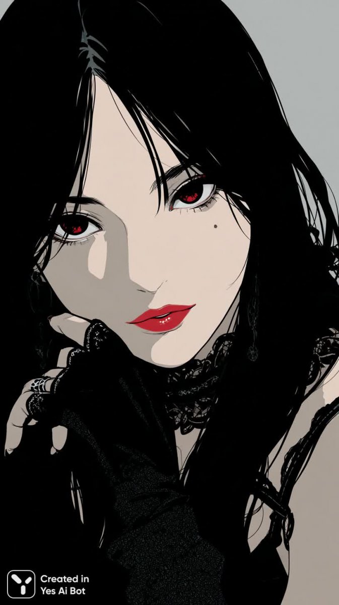 Завораживающая аниме-девушка в готическом стиле предстает перед нами в ярком цифровом арте. Ее поразительная красота сочетает в себе невинность и дерзость, подчеркнутые тщательно продуманным макияжем и ослепительной улыбкой. Длинные черные волосы ниспадают волнами, обрамляя лицо с пронзительными ярко-красными глазами, излучающими внутреннюю силу и загадочность. Острые клыки намекают на скрытую хищность, а длинные острые когти добавляют образу нотку опасности и таинственности. На ее изящных пальцах красуются элегантные кольца, завершая образ утонченной готической дивы. Четкие контуры рисунка подчеркивают динамичность и выразительность персонажа, создавая впечатление живой мультяшной героини, готовой окунуть зрителя в мир фантазий и приключений. Эта яркая иллюстрация сочетает в себе элементы аниме-стилистики с готическим колоритом, делая ее поистине уникальной и запоминающейся. Взгляд девушки пронзителен и полон скрытых смыслов, приглашая к разгадке ее внутреннего мира. Ее образ – это воплощение красоты, силы и загадочности, сочетание нежности и опасности, создающее неповторимую атмосферу притяжения. Детализированный рисунок и яркие цвета делают эту работу настоящим произведением искусства цифровой живописи, демонстрирующим мастерство художника в создании запоминающихся аниме-персонажей с выразительным характером и глубоким смыслом