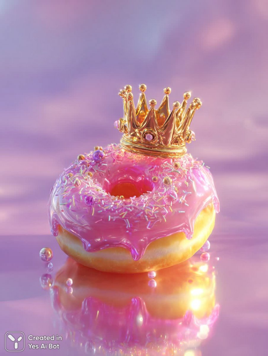 Невероятно очаровательный розовый пончик восседает на троне сладостей, увенчанный изящной золотой короной. Яркий акцент цвета фуксии выделяется на фоне нежного лавандового пастельного оттенка, создавая ощущение легкости и воздушности. Композиция пронизана духом игривости и фантазии, приглашая зрителя в мир сладких грез и безграничного воображения. Тщательно выверенные детали, от текстуры глазури до мельчайших изгибов короны, оживляют изображение, делая его почти осязаемым. Четкие тени подчеркивают объемность пончика и добавляют глубину всему произведению. Это не просто изображение десерта — это миниатюрная сказка, воплощенная в цифровом искусстве, наполненная радостью, утонченностью и волшебством. Идеально подходит для создания ярких акцентов в дизайне, иллюстраций для детских книг или как элемент декора, который добавит нотку игривости и позитива в любое пространство. Сочетание сочных цветов и продуманной композиции гарантирует внимание и вызывает улыбку у каждого, кто увидит этот восхитительный шедевр. Погрузитесь в мир сладостей и позвольте себе немного волшебства с этим невероятно привлекательным изображением пончика-короля